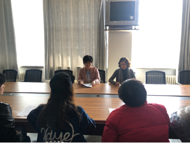 在会议室组织召开主题班会。学院副院长王晓光、兼职辅导员苗品佳老师出席了班会。