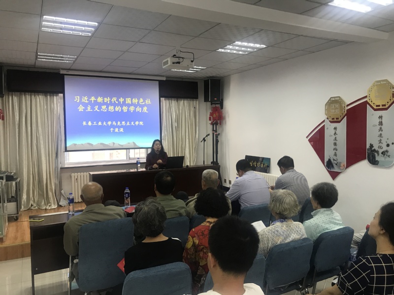 向社区老党员进行了一场生动的十九大精神宣讲,主题为“习近平新时代中国特色社会主义思想的哲学向度”,于浚湜老师运用马克思主义原理,分三个方面对党的十九大精神进行解读,在于浚湜老师精彩的宣讲和社区老党员们的认真听讲下,宣讲会取得巨大的成功。宣讲结束后,由研究生党员和社区老党员共同参观社区书屋,与社区老党员进行座谈,了解社区居民社区生活,解惑社区居民政策难题,社区老党员代表说,首先非常感谢网黄
