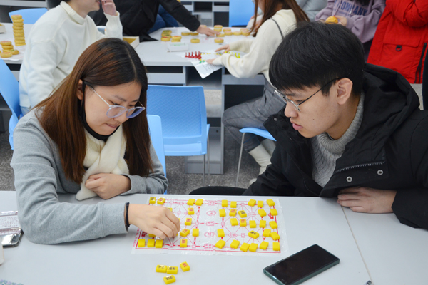 比赛中,同学们棋逢对手、沉着应战,五子连珠、楚河对阵,表现出较高的棋艺水平和良好的心理素质。各比赛场地一片欢声笑语,许多同学表示,不同地域的文化元素蕴含在棋牌中,拓宽了思维,提高了观察和思考的能力,缓解了学业压力。