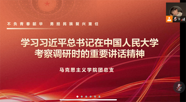 团总支、研究生会、各年级团支部采用网络会议形式,学习热议总书记重要讲话精神。