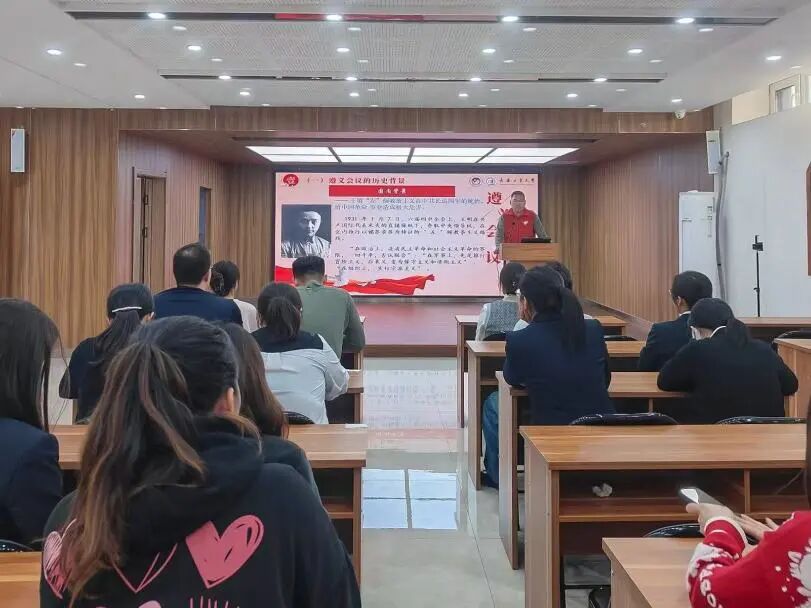 共同策划“遵义会议精神宣讲走进中小学”活动。结合不同学段学生的认知特点,设计梯度化宣讲内容,与中小学思政课教师联动,用动画、绘本、角色扮演等形式讲述遵义会议中的“小故事”,通过历史档案解密、情景短剧再现,引导中小学生思考“实事求是”、“独立自主”的现实意义,以形成“启蒙—深化—践行”的红色教育闭环,将红色精神内化于心、外化于行。