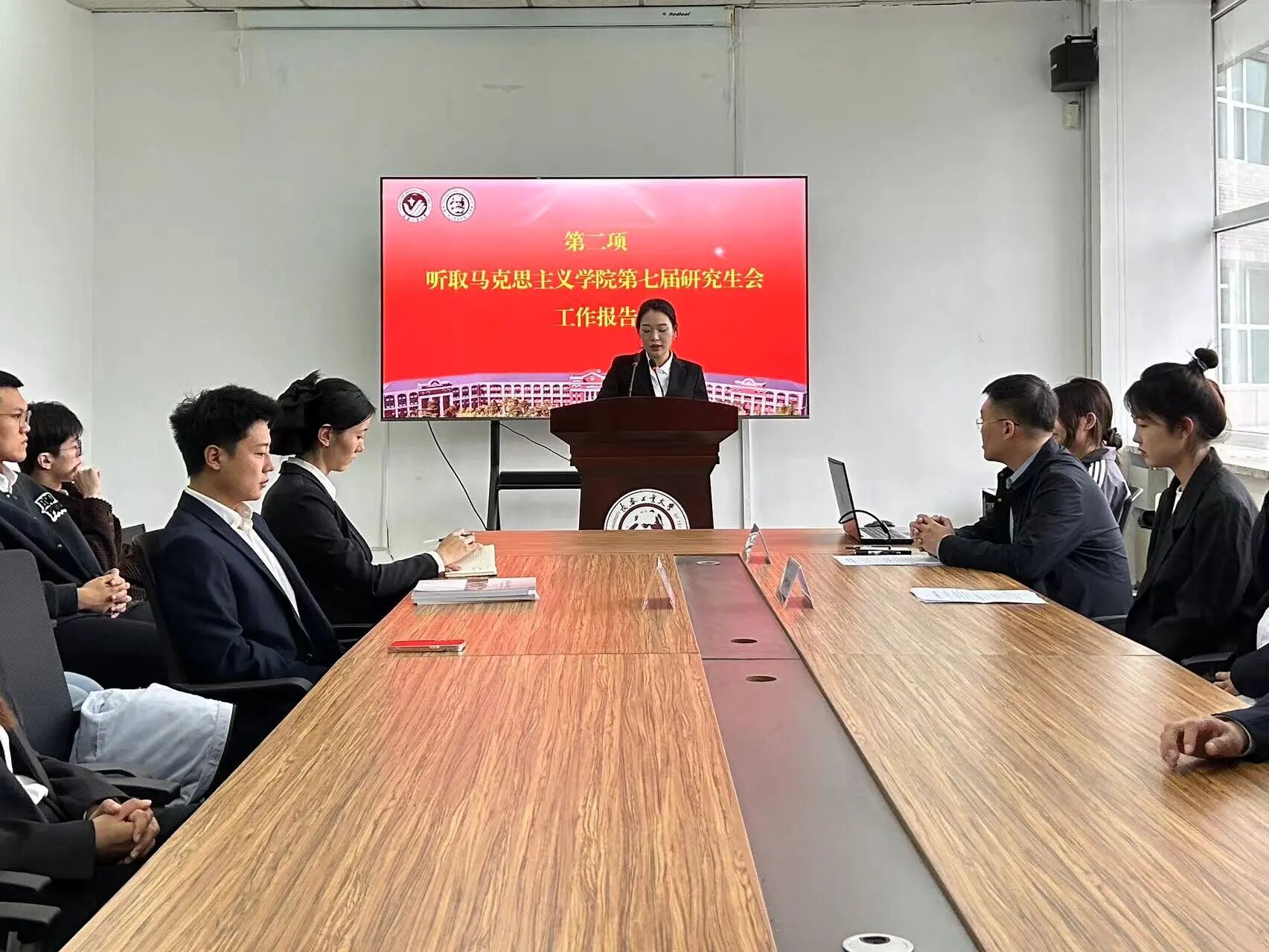 第七届、第八届研究生会主席团成员以及研究生代表参加参加本次大会。研究生会秘书处负责人宫胜清主持本次会议。