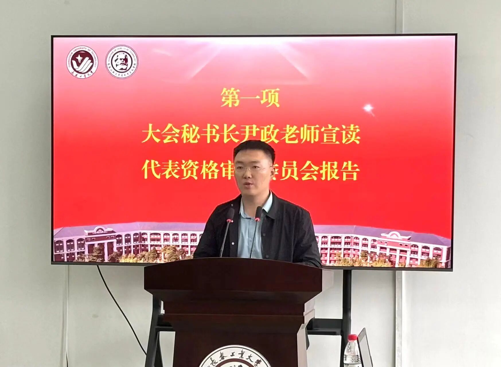 第五次研究生代表大会秘书长尹政老师宣读代表资格审查委员会报告。