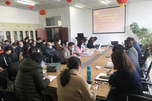 组织开展双周三政治理论学习,党委书记朱兴国传达学习2021年全国“两会”期间习近平总书记重要讲话精神和全国“两会”精神,吉林省传达全国“两会”精神会议要求,以及省委书记景俊海在省管主要领导干部学习贯彻党的十九届五中全会精神专题研讨班上的讲话精神和在吉林省党史学习教育部署会上的讲话精神。全院教职工参加了学习。