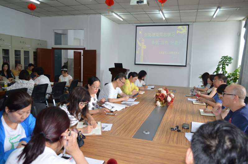全体教工在学院资料室开展向郑德荣学习活动,争做“四有”好老师。