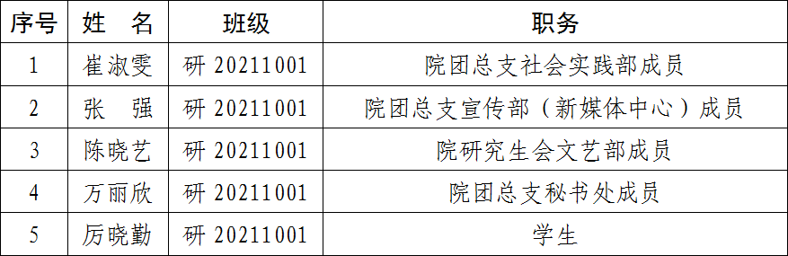 为了认真贯彻党的发展党员工作方针,充分发扬民主,增加发展党员工作的透明度,把好发展党员质量关,确保新党员质量,经本学院党委研究,现将已列入2022年度发展计划,且通过党支部民主测评的发展对象在全院范围内公示。公示时间为5个工作日(2022年10月10日至2022年10月14日)。在公示期内,党内外群众如对发展对象有意见,请以真实单位、姓名,用书面、电话等形式如实反映情况。群众反映的问题可受到法律保护,我们将严格保密。
