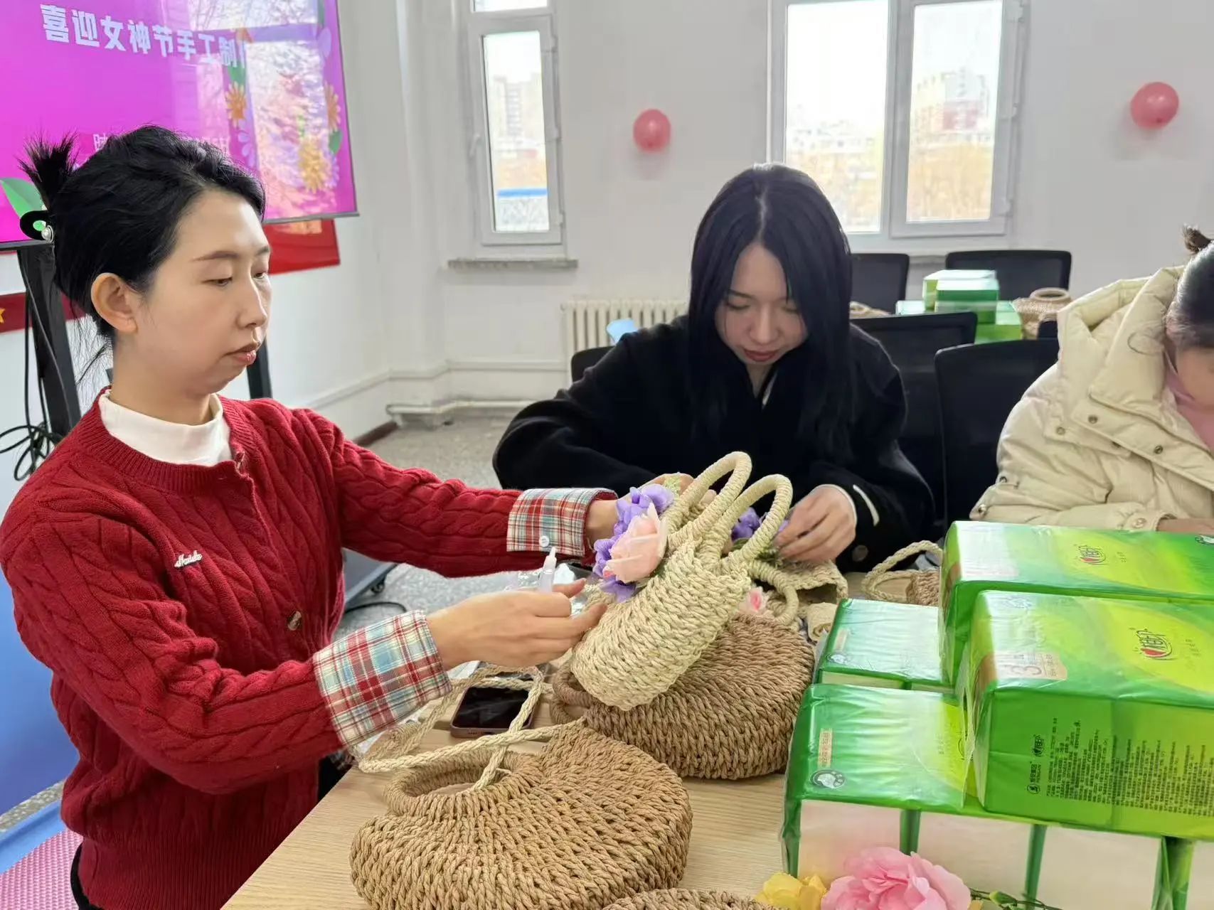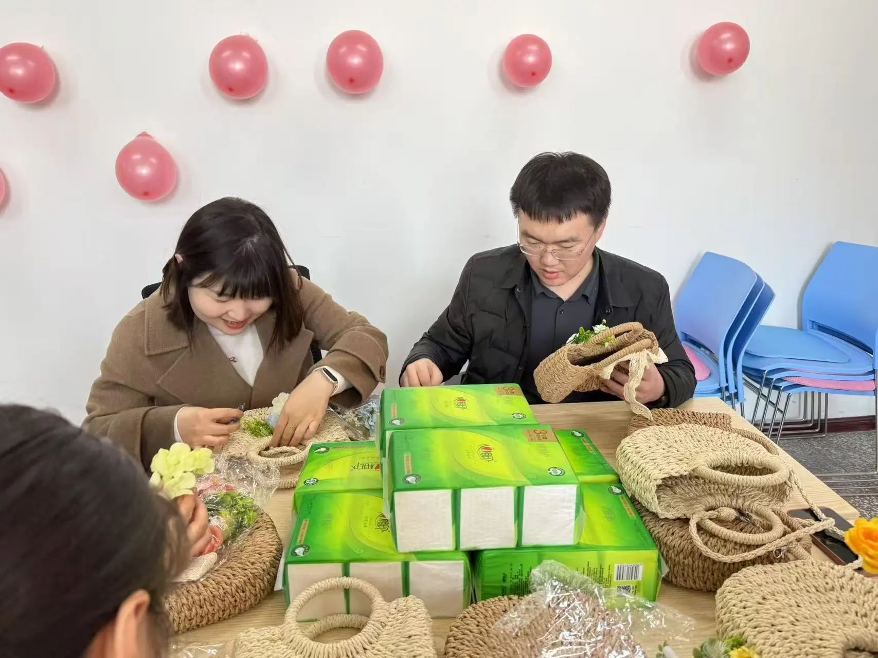 在学院会议室开展“包揽春日,魅力巾帼”手工草编包DIY活动,全院教职工齐聚一堂,共度温馨且意义非凡的节日。
