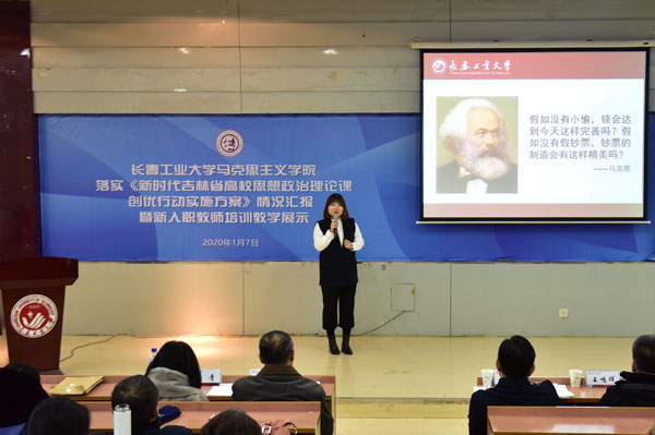 在综合楼三楼报告厅举行落实《新时代吉林省高校思想政治理论课创优行动实施方案》情况汇报暨新入职教师培训教学展示活动。校党委书记王忠,党委副书记李雁冰,党委常委、宣传部部长、教师工作部部长王鸣晖,人事与人才工作处、教师教学发展中心、教学质量监控与评价中心等部门负责人出席活动。网黄