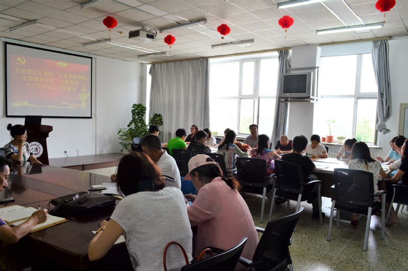 《关于开展“立足本职本岗、全面服务学生”主题思想大讨论活动的通知》,并就贯彻好、落实好通知精神,结合学院中心工作和教师岗位职责实际做了工作部署和动员。为扎实开展好大讨论活动,学院成立了由党总支书记、院长任组长的领导小组;制定了活动开展的路线图和时间表;明确了工作任务和具体要求,以确保大讨论活动落地生根,收到实效。朱兴国强调,全院教师要正确认识开展“立足本职本岗、全面服务学生”主题思想大讨论活动的重要性和必要性,并要求全院教师在工作中要牢固树立“以生为本”的工作理念,在提高教学技能、做好本职工作的基础上,密切联系学生,倾听学生呼声,进一步增强为学生服务的意识,提升为学生服务的本领和能力,全心全意为学生服务,实现好、维护好、发展好学生的根本利益。
