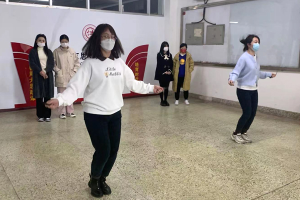 妇委会在学院二楼中厅举办女教工跳小绳比赛。