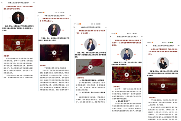 党的二十大精神宣讲团,通过微信公众号推送党的二十大精神宣传阐释微视频20期,其中多次入选学习强国吉林平台展播。学院党委坚决扛起主题教育政治责任,高质量召开了主题教育领导小组会议、专题读书班、调查研究成果交流会和专题民主生活会。组织开展“战疫思政微课”“思政心课堂”“讲述工大战疫故事”“党史故事”“中国共产党精神谱系宣讲”等系列思政微课82期。组织开展党史理论素养提升专题培训48讲,着力推动主题教育学习入脑入心、见行见效。深入凝练基层党建“一院一品、一支一特”,系统研究提出了网黄