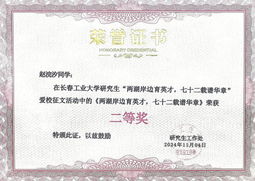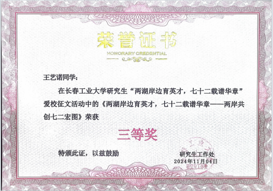 为深入学习宣传贯彻党的二十大精神,教育引导广大青年学子牢固树立爱党爱国、爱校荣校的责任感与使命感,进一步推动中华优秀传统文化传承发展,网黄 研究生积极参加校研究生工作部(处)开展的“两湖岸边聚英才,七十二载谱华章”主题爱校征文活动,并荣获一等奖一项、二等奖两项、三等奖两项。此次获奖,不仅为学院赢得了荣誉,更是对青年学子爱校情怀的褒奖。
