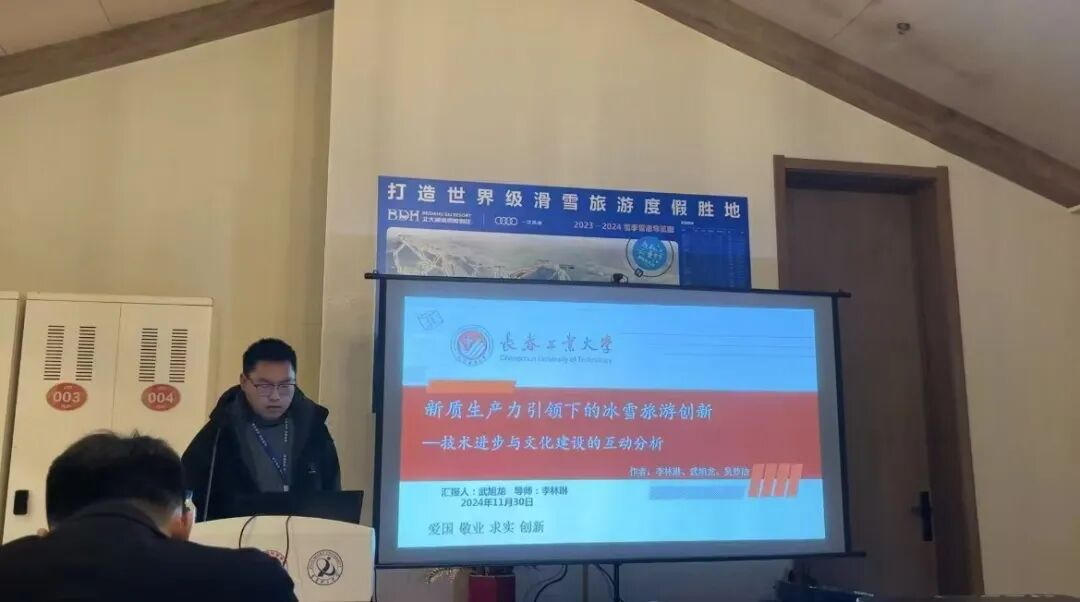 2024级思想政治教育专业研究生武旭龙和吴梦洁同学提交的学术论文《新质生产力引领下的冰雪旅游创新 ——技术进步与文化建设的互动分析》经组委会评议,通过评审,并受邀在“新质生产力赋能冰雪产业”分论坛上做学术分享。武旭龙围绕“新质生产力”的深刻内涵和党的二十届三中全会精神指引,详细论述了“新质生产力”助力吉林省冰雪经济与冰雪文化发展的实践路径选择。吉林大学博士生导师裘鹏教授对武旭龙的汇报做了专业点评,充分肯定了论文成果,并提出了具有建设性和前瞻性的建议。