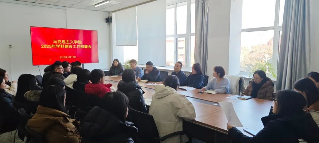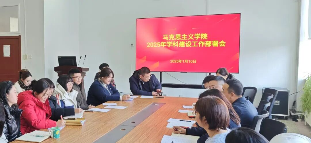 “学科专业建设年”总结会暨“五位一体”学科建设高质量发展专题推进会会议精神,1月10日下午,学院召开2025年学科建设工作部署会。学院班子成员、教研室主任、支部书记、研究中心负责人及青年博士参加会议,会议由学院院长于浚湜主持。